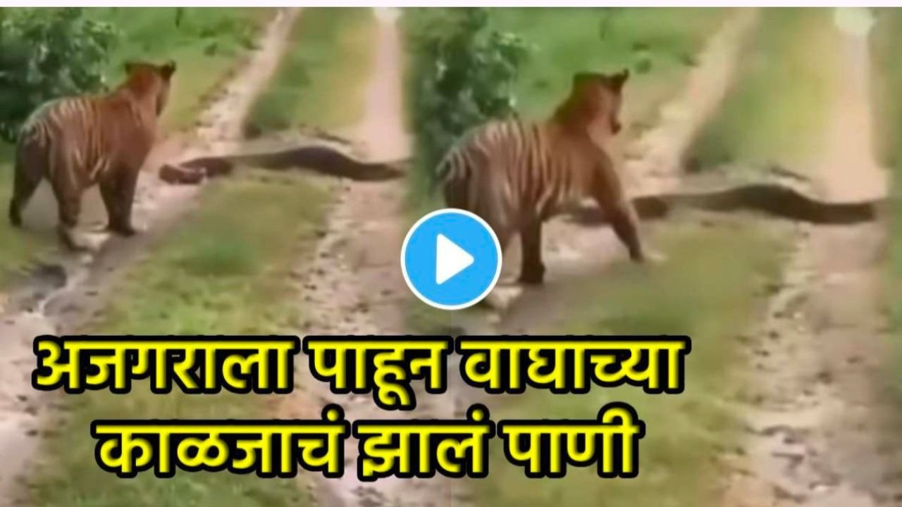 या व्हायरल व्हिडीओमध्ये तुम्ही पाहू शकता की, जंगलामध्ये वाघ निवांत फिरत असून तो फिरत असलेल्या वाटेवर त्याला अचानक एक भला मोठा अजगर पसरलेला दिसतो. अजगरामुळे वाघाला पुढे जाण्यासाठी अडथळा येतो, भल्या मोठ्या अजगराला पाहून वाघ पुढे जाण्यास दचकतो आणि मागे फिरतो. सगळे प्राणी ज्याला पाहून लपतात असा वाघ चक्क एका अजगराला घाबरल्याचे पाहून नेटकरीही अवाक् झाले आहेत. सध्या हा व्हिडीओ सोशल मीडियावर खूप व्हायरल होत आहे.